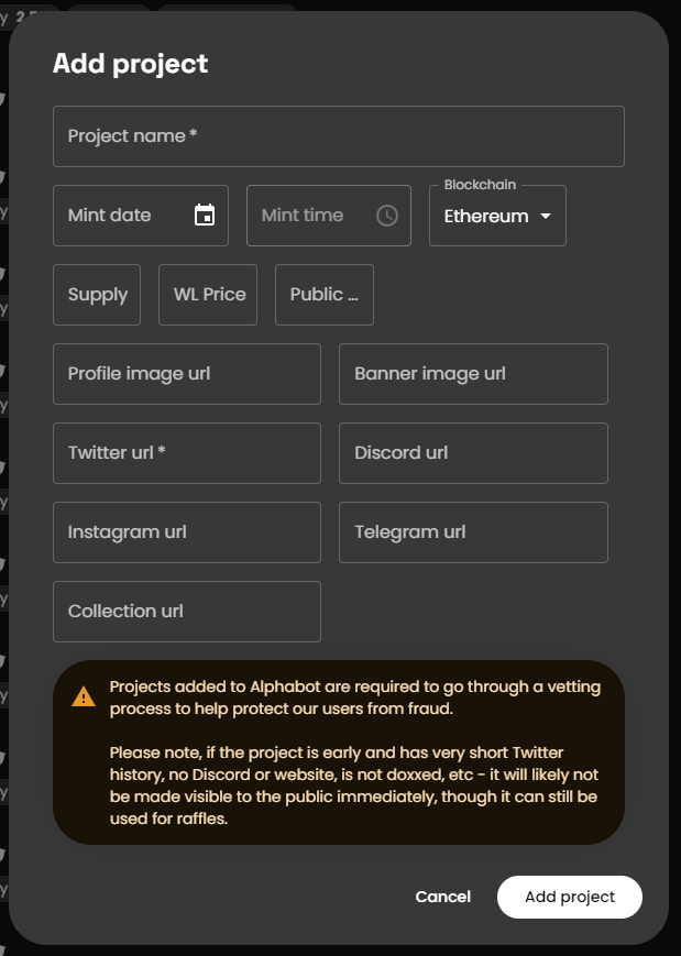 *\*Only the project name and Twitter URL are required*